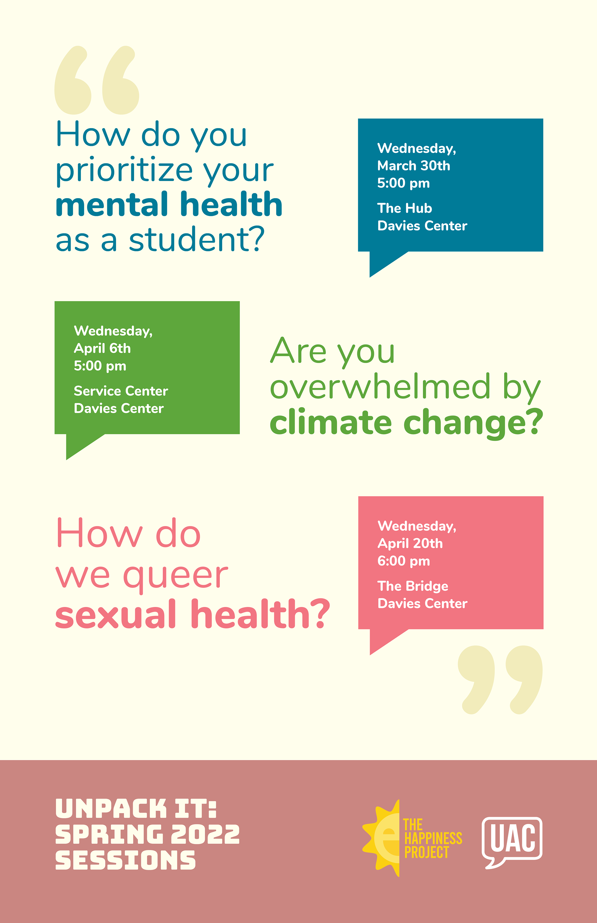The office played a central role in many campus-wide events, and put a unique emphasis on collaboration between designers and areas of campus. I created branding initiatives and marketing materials for on-campus events as well as other campaigns. I was able to partake in the interview and hiring process for other interns in my office during my tenure, which helped me learn more about how I could improve during the application and interview process.
