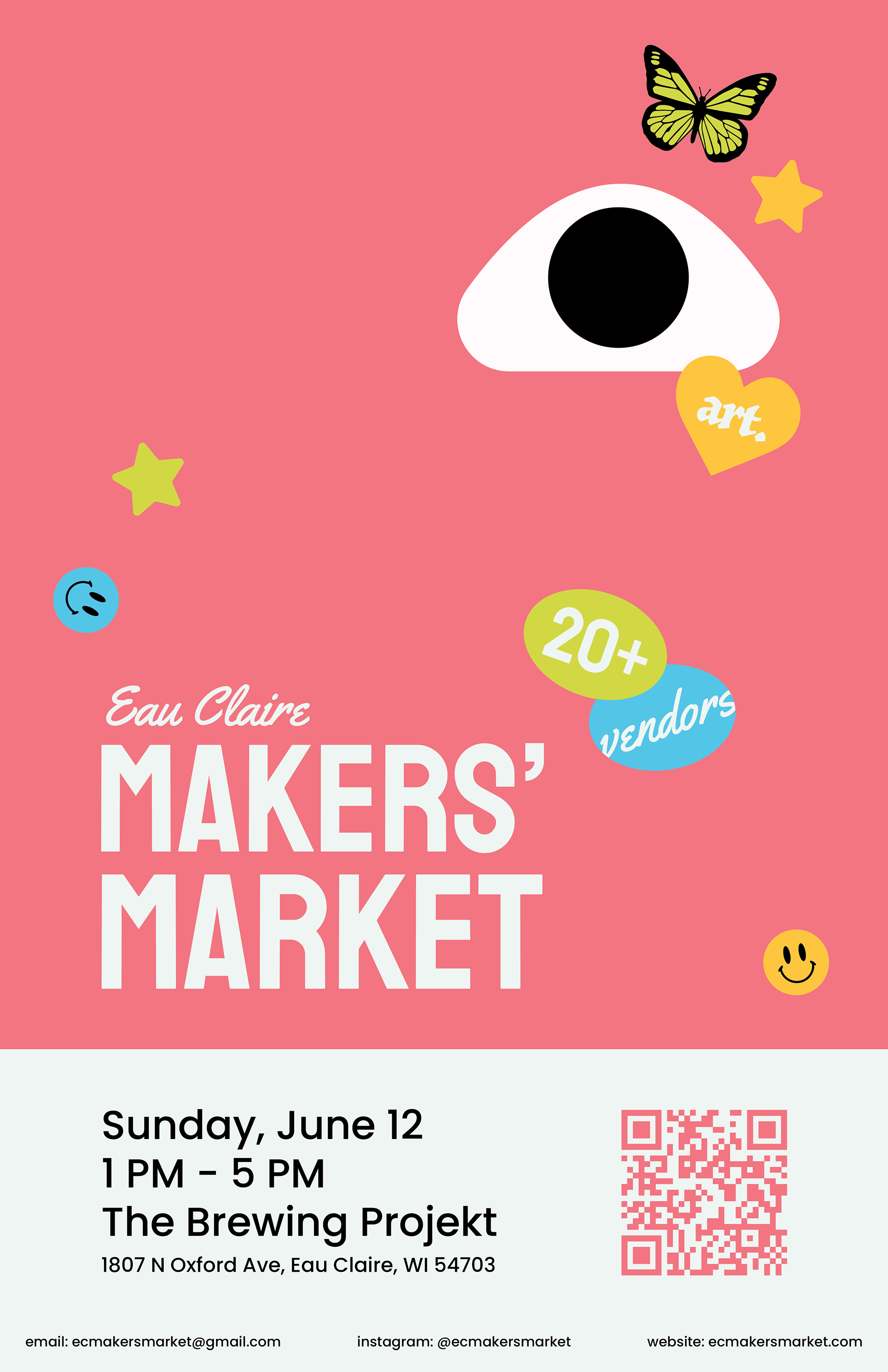 ECMM was originally founded by my two friends, Lexi Kane and Kala Rehberger, in the summer of 2021. They felt like the Chippewa Valley, widely known for its' art and music culture, was lacking opportunities for young artists and students. I was brought on in September to create a logo, branding, social media posts, and other marketing graphics as the once spontaneous yard sale became a quickly growing organization with many demands.