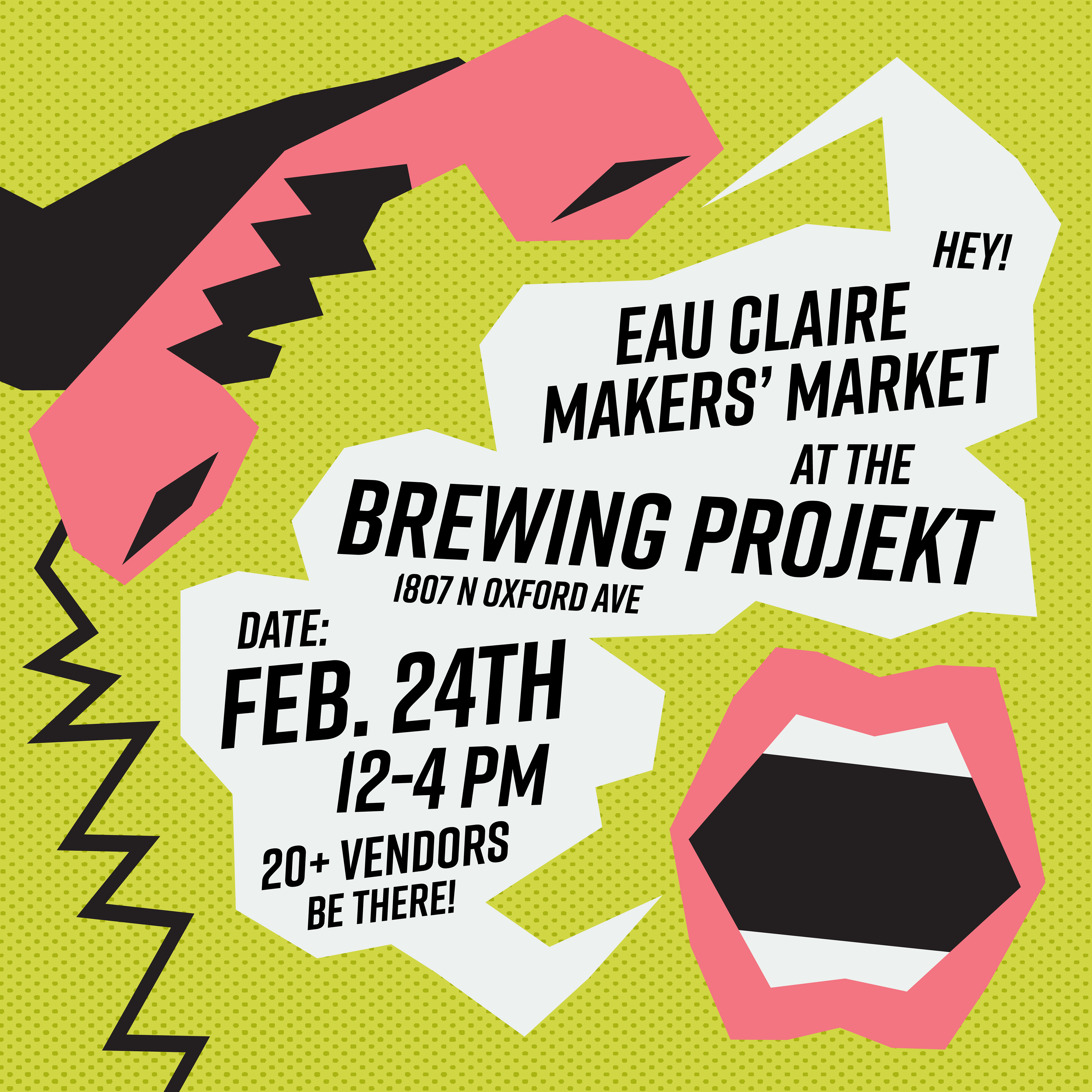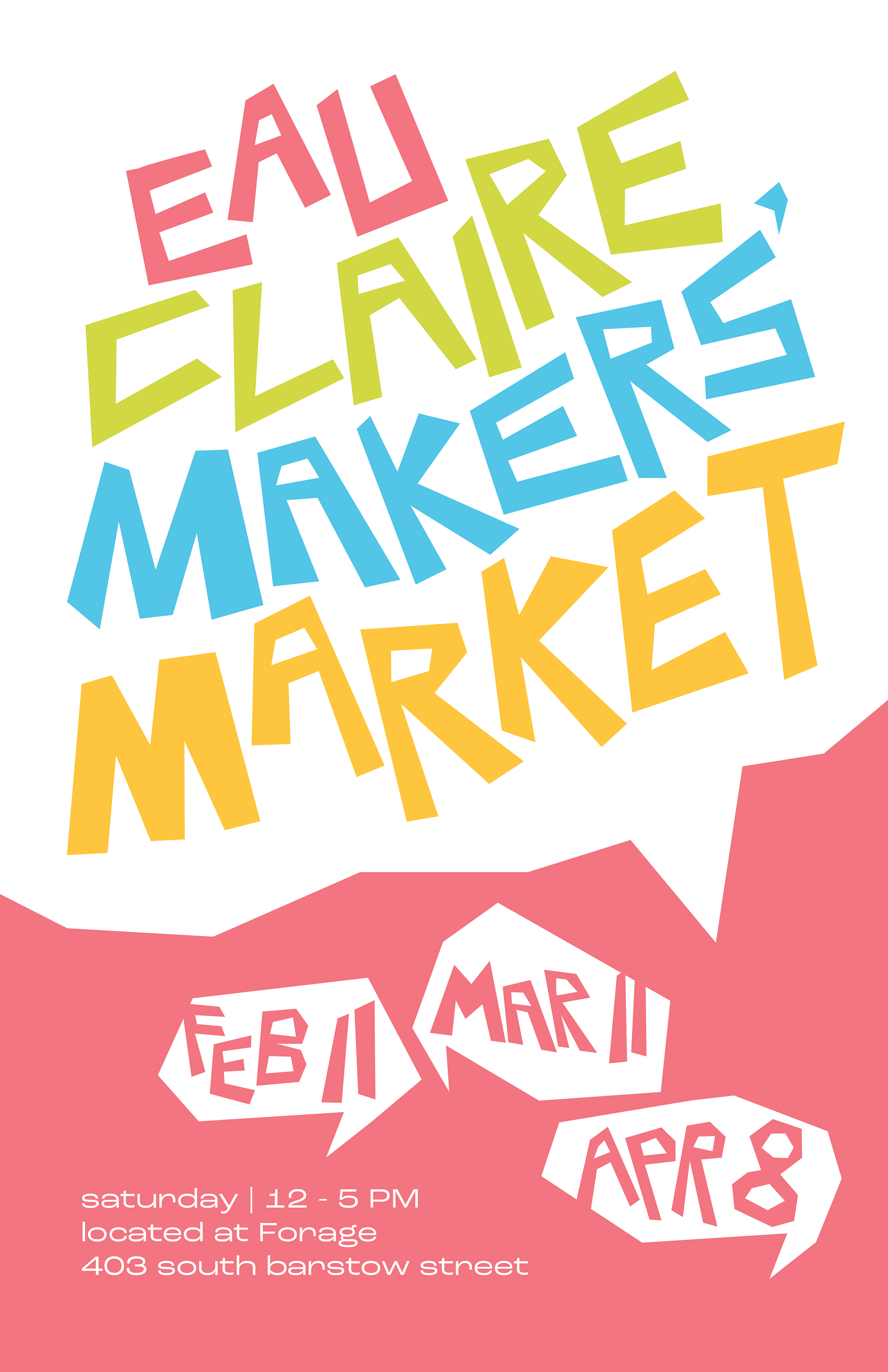 When creating the icon, word mark, and overall brand identity, I had a few qualities in mind that I wanted to express. Our market is structured to be low-cost for new artists who want to try their hand at selling their wares. So, I needed colors that were inviting, welcoming, and approachable in nature. We chose a vibrant and bright color scheme to reflect this. Our audience is mostly young people, students at the universities in the Chippewa Valley (UWEC, UW-Stout, and CVTC), and families with kids. Bright colors and a mascot (our M) both helped us to reach across multiple age and social groups and catch their attention. A mascot/icon was also helpful to give our brand a recognizable figurehead apart from our own personal social media presences, and place us ahead of other non-branded markets. Branding ourselves also helped our social media presence bloom, because any of our crew members could design a post that fits our brand just by using the color scheme. For an organization made up of a rotating cast of college students, a brand has helped continue to establish and solidify our place in Eau Claire.