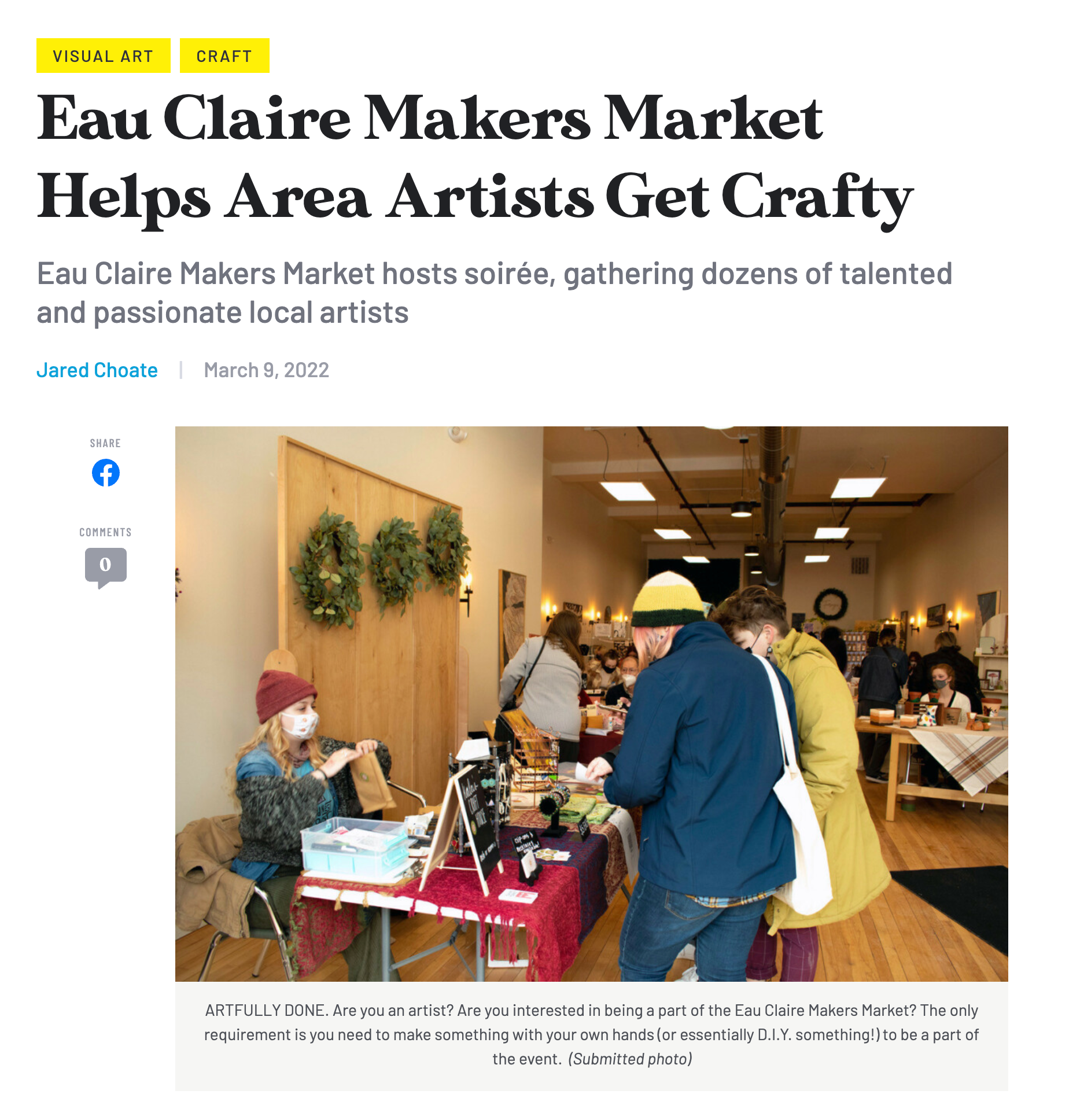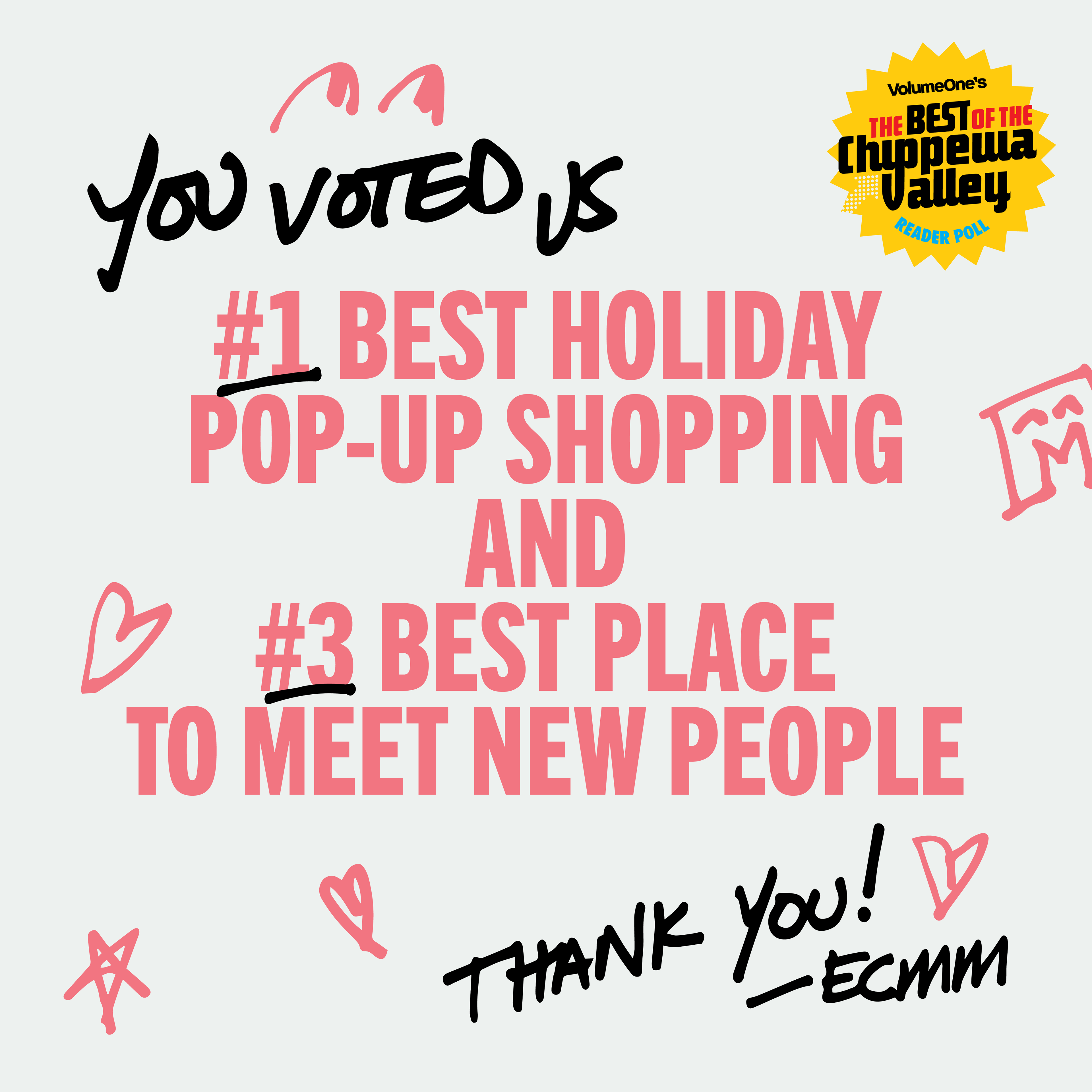 Eau Claire Makers' Market was voted the #1 Best Holiday Pop-Up Shopping and #2 Best Event of the Past Year by the residents of Northwest Wisconsin in Volume One's yearly "The Best of the Chippewa Valley" Reader Poll. Volume One is a fast-growing culture and entertainment publication of the Chippewa Valley. They have been publishing issues bi-weekly for over 20 years, and they currently distribute 14,000 copies to over 400 locations. Over 16,000 individuals participated in the voting for the 2023 Reader Poll, and cast nearly 200,000 votes in all categories. We're very thankful to be recognized by the community we serve, and hope to continue serving EC residents for years to come.